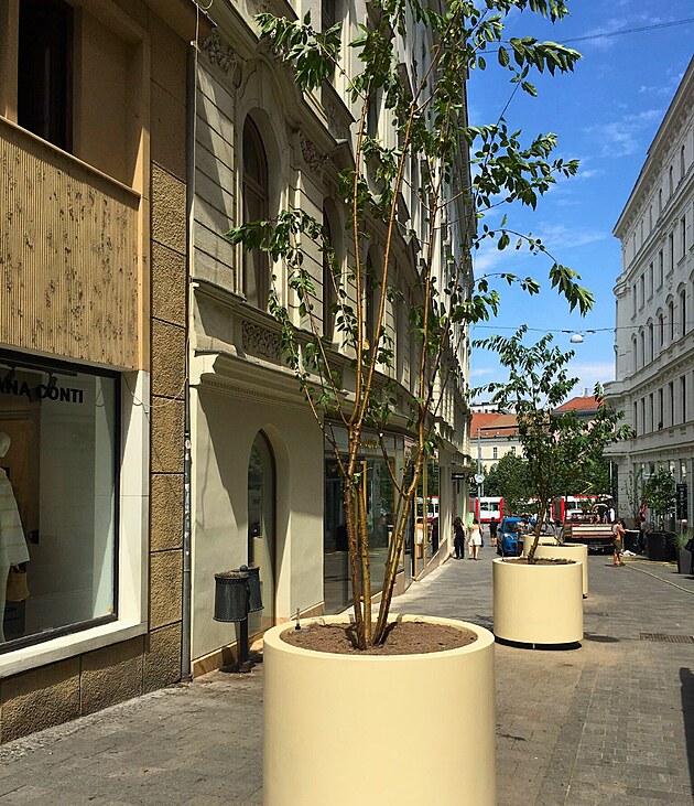 Čerstvou novinkou v boji proti neukázněným řidičům je 17 obrovských květináčů se stromky v Zámečnické ulici u náměstí Svobody. Nacházejí se v místě, kde dosud vcelku běžně parkovala auta.