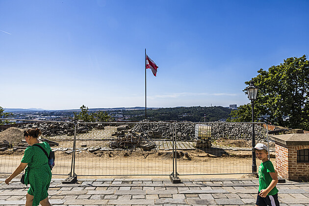 Nad hradem Špilberk vlaje brněnská vlajka, kterou si někteří návštěvníci pletou s rakouskou. U vstupu tak přibyla cedule vysvětlující rozdíly mezi oběma vlajkami - ta brněnská má nahoře užší bílý pruh navíc. (20. srpna 2025)