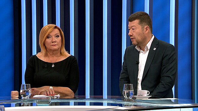 Alena Schillerová a Tomio Okamura v Nedělní partii na CNN Prima News (5. října 2025)