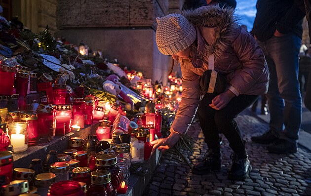 Filozofická fakulta byla po střelbě uzavřena a obehnána policejními páskami. Když tam policie umožnila vstup, začali lidé přinášet květiny a svíčky. (25. prosince 2023)