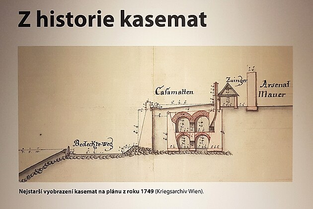 Nejstarší vyobrazení kasemat na Špilberku na plánu z roku 1749.