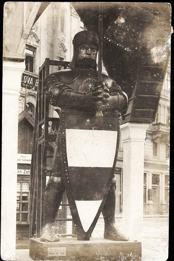 Socha německého rytíře Wehrmanna s mečem byla na brněnské náměstí Svobody umístěna na oslavu hrdinství rakousko-uherských vojsk v první světové válce. Po vyhlášení Československa jí čeští Brňané urazili meč a hlavu, aby ji poté svrhli celou.