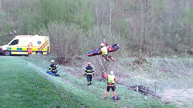 U ženy, která se zranila při pádu z kola na single trailu v brněnském Mariánském údolí, zasahovali záchranáři, hasiči i policisté. K transportu z nepřístupného terénu využili vakuová nosítka a vrtulník s palubním jeřábem. (20. dubna 2025)