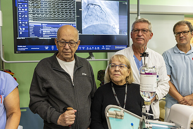 Josefa Polenu (na snímku s manželkou Alenou) zachránili kardiologové FN Brno poté, co prodělal infarkt a byl více než půl hodiny resuscitován. (10. července 2025)
