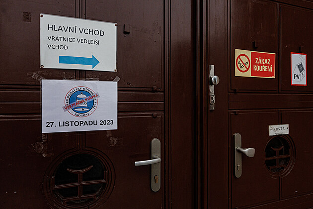 Celodenní výstražná stávka základních, středních i mateřských škol v České republice. Základní škola a Mateřská škola Brno Merhautova. (27. listopadu 2023)