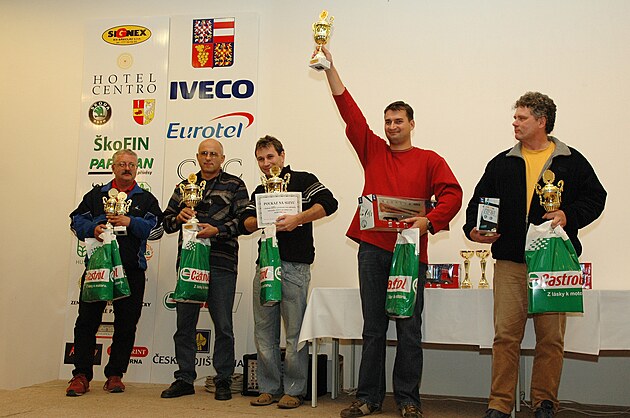 Dekorování vítězů na první Agrotec rally Hustopeče v roce 2005. Závod začínal v říjnovém termínu.