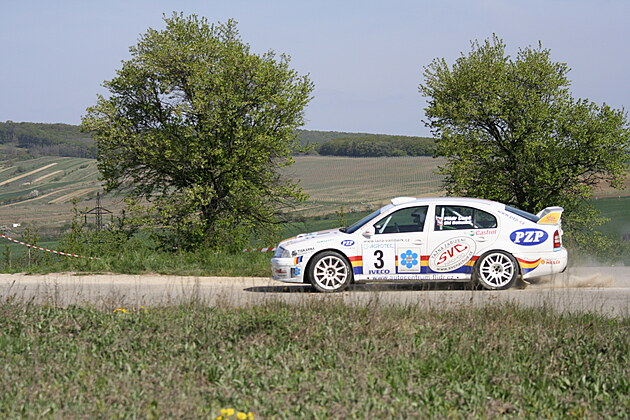 Vůz na trati Agrotec rally Hustopeče v roce 2007. Závod se vydal do malebného terénu na Břeclavsku.