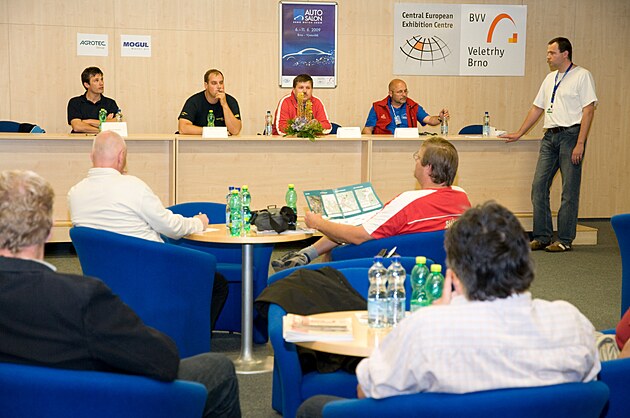 Tisková konference během Agrotec rally Hustopeče v roce 2009, ředitel Martin Rada za stolem uprostřed.