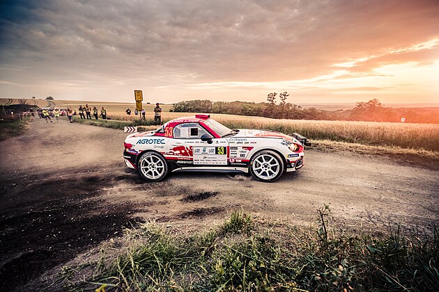 Ředitel závodu Martin Rada na trati Agrotec rally Hustopeče v roce 2018 v divácky populárním Fiatu Abarth.