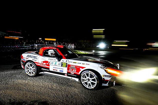 Ředitel závodu Martin Rada na trati Agrotec rally Hustopeče v roce 2022 v divácky populárním Fiatu Abarth.