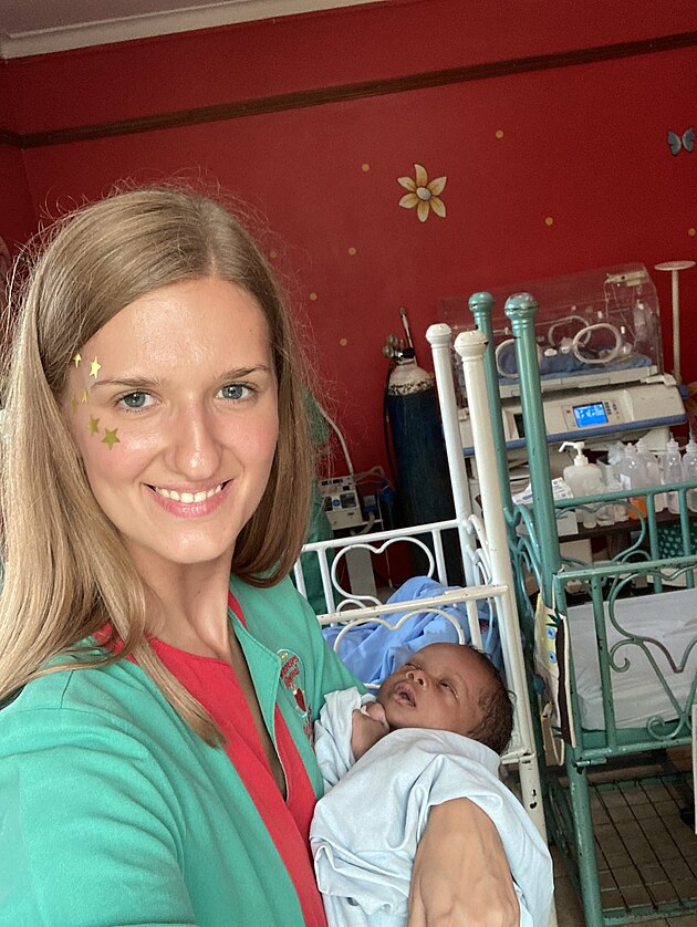 Dobrovolnice Hana Martinková nabídla svou pomoc při práci v nemocnici ve východoafrické Ugandě. Na snímku s ní chlapeček Abdu, který po operaci dobře prospíval.