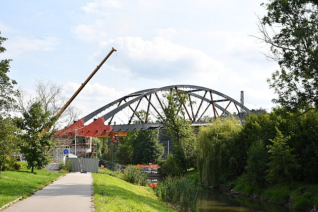 Mostní konstrukce přes řeku Svitavu v Blansku je po desetidenním vysouvání usazena na svém místě.