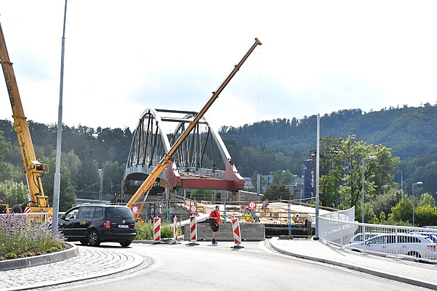 Mostní konstrukce přes řeku Svitavu v Blansku je po desetidenním vysouvání usazena na svém místě.