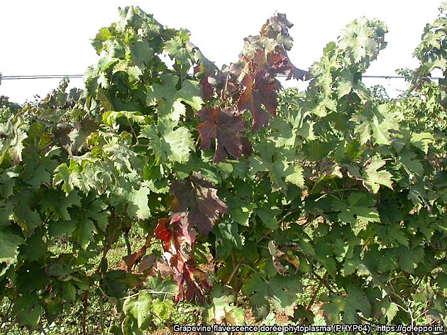 Pod tíhou nemoci se listy révy vinné zbarví do zlatožluta, ale mohou mít až nafialovělý vzhled. Postupně se svinou, jsou kovově lesklé a křehké.