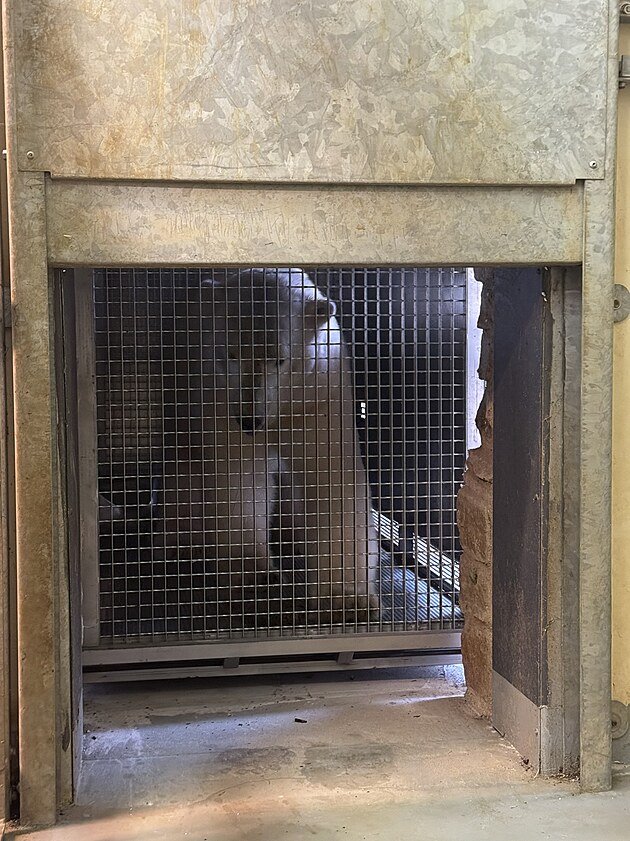 Jedna ze dvou ledních medvědic v zázemí brněnské zoo, kam v pátek ráno přicestovaly z Německa. (18. července 2025)