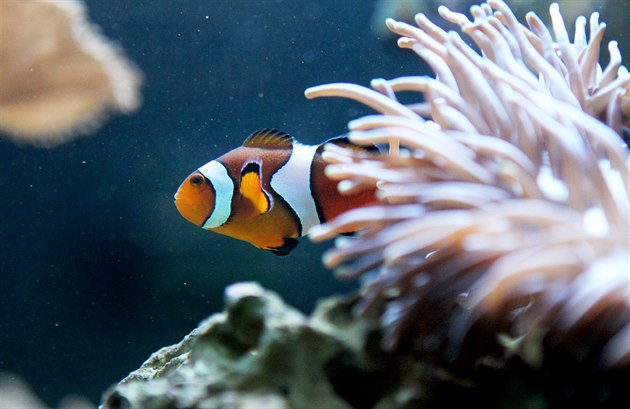 Červenobílá rybička Nemo plave v akváriu „korálový útes“. Děti určitě ocení i přítomnost dalších filmových hrdinů - Nemova tatínka Marlina a jeho kamarádky Dory.