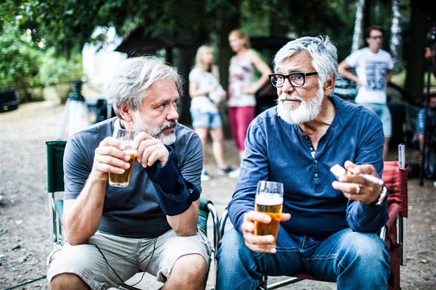 Radek Bajgar a Jiří Bartoška při natáčení filmu Teorie tygra