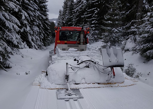 Většinu tras Krušnohorské lyžařské magistrály mezi Božím Darem a Jelením upravila v uplynulých dvou dnech po vydatnějším sněžení rolba, jen běžeckou stopu u Mrtvého rybníka museli prošlápnout sami běžkaři.