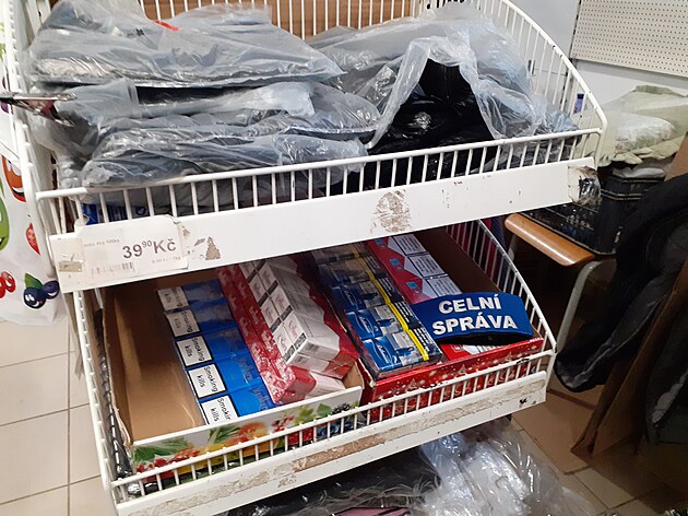 Prodejci vymýšlejí stále rafinovanější skrýše na neoznačené cigarety. Ty na snímku ale jen ledabyle překryli jiným zbožím.