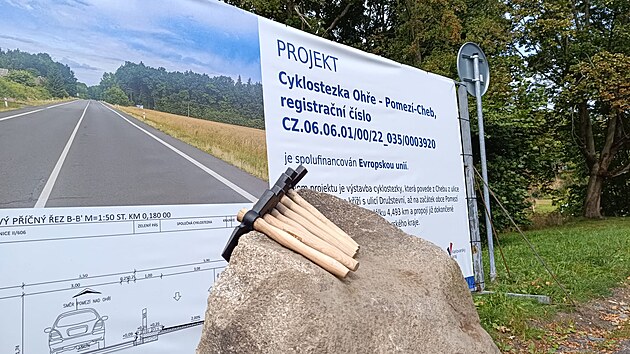 Usazením základního kamene začala ve středu stavba jednoho z posledních chybějících úseků cyklostezky Ohře z Chebu do Pomezí nad Ohří. (27. srpna 2025)