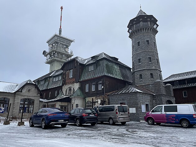 Chátrající historický hotel na Klínovci