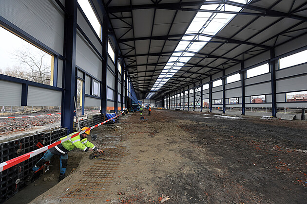 Nová opravárenská hala v Chebu bude dostatečně dlouhá na to, aby se tam vešly téměř všechny vlakové soupravy, které v Česku jezdí. (16. ledna 2025)