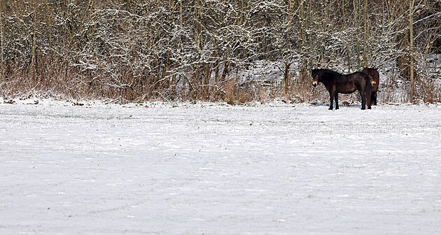 Divocí koně přivezeni z Milovic se už zabydlují na pastvinách v okolí Krásné u Aše.