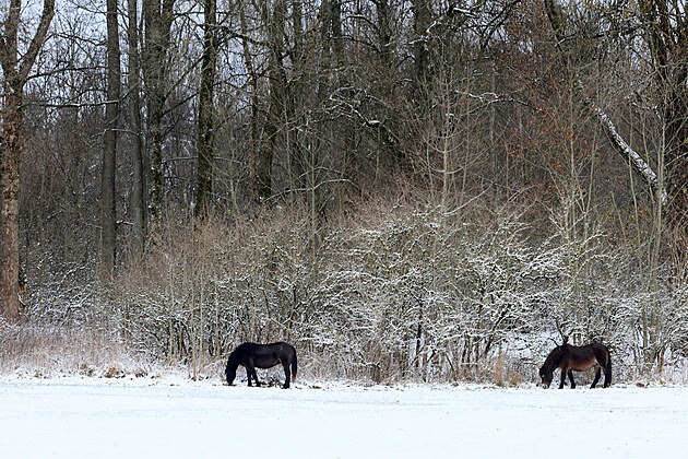 Divocí koně přivezeni z Milovic se už zabydlují na pastvinách v okolí Krásné u Aše.