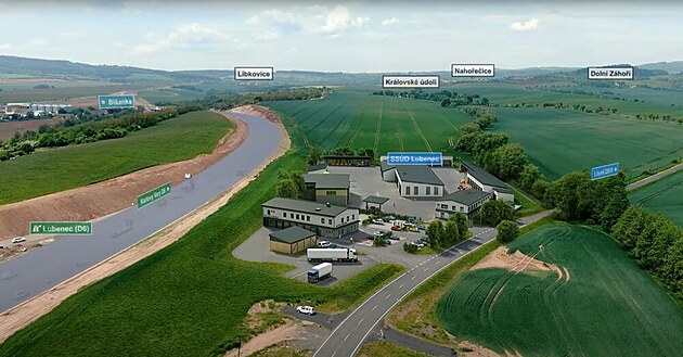 Vizualizace podoby budoucího střediska správy a údržby dálnice D6 u Lubence.