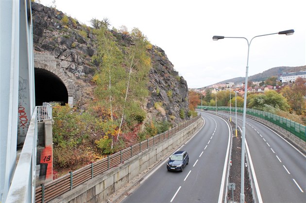 Skalní masiv nad silničním průtahem Karlovými Vary v Táborské ulici