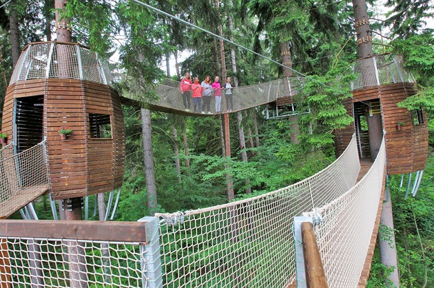 První novou atrakcí je stezka v korunách stromů, která návštěvníky zavede až do patnáctimetrové výšky. Podle Evžena Krejčího si tam prohlédnou místa, kde raší pupeny, šišky a létají tam ptáci. „Chtěli jsme, aby lidé nepozorovali stromy jen při zemi, kde vidí pouze holý kmen, ale aby se cítili, jako kdyby byli uvnitř,“ popsal.
