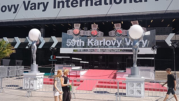 Před hotelem Thermal je už skoro vše připravené na příjezd prvních festivalových hvězd (2. července 2025).
