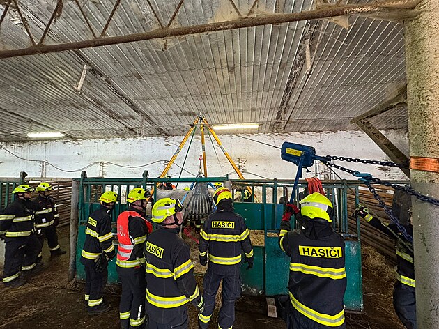 Postavit koně zpět na nohy ve stáji v Krásné u Kraslic na Sokolovsku trvalo hasičům přibližně tři hodiny. (27. října 2024)