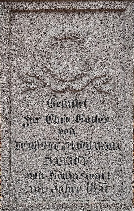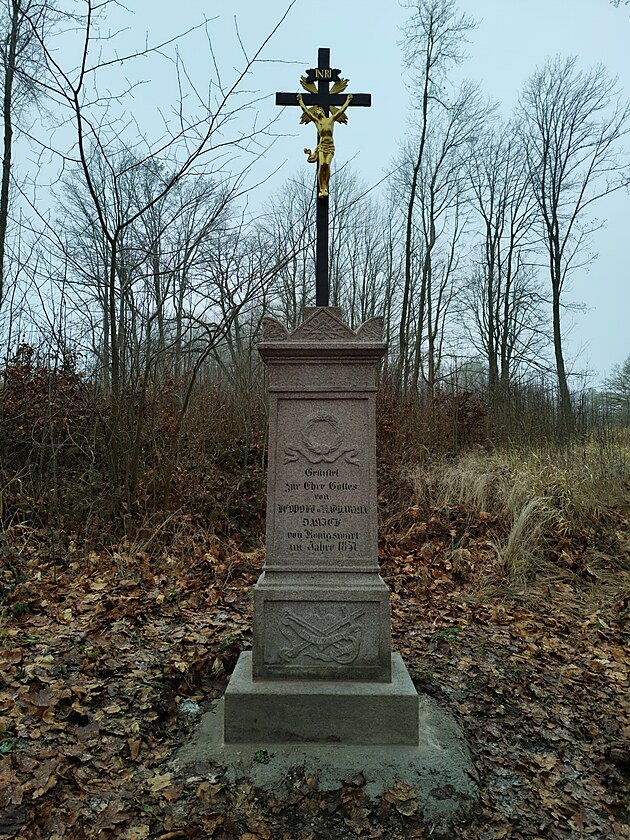 Detail nápisu, který prozrazuje, že byl kříž osazen v roce 1857
