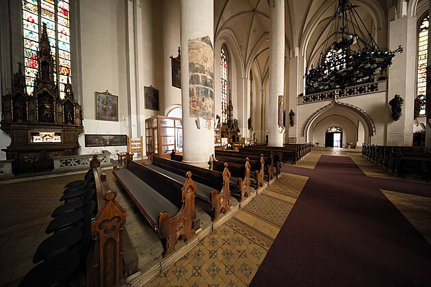 Interiér chrámu sv. Mikuláše a Alžběty, kde je Sigmund Wann pochován v podzemní kryptě.