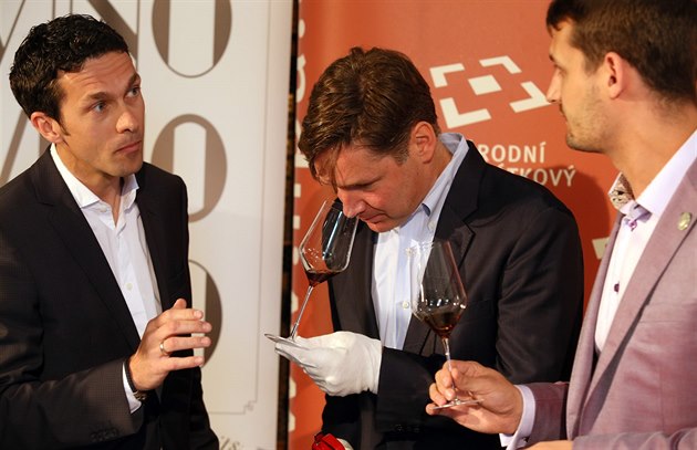 Ochutnávka vín nalezených v roce 1985 společně s relikviářem svatého Maura na zámku v Bečově nad Teplou. Vína z lahve odebírali speciální technologií Coravin bez vytažení korku a nebezpečí oxidace. Na snímku Andreas Wickhoff, Greg Lambrecht a Jakub Přibyl.