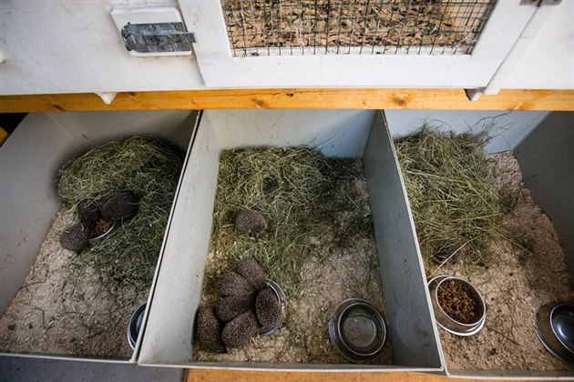 Zimu slabí ježci přečkávají v pavlovské stanici v boxech přibližně po pěti. Třikrát denně dostávají krmení.