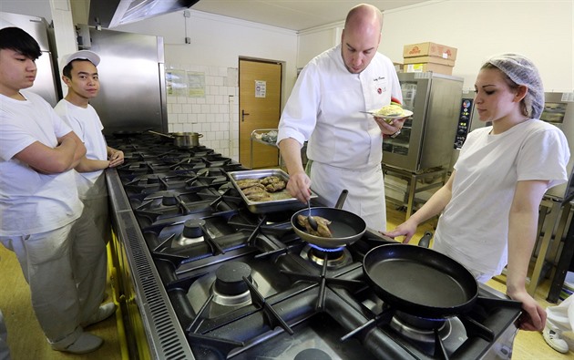 „Tuhle připálenou teflonku vyčisti pěkně drátěnkou. Ať se jen leskne,“ přikazuje se šibalským úsměvem jednomu ze studentů. Vykulené oči, vrtění hlavou a varovně zdvižený prst učitelky praktického vyučování vše uvádí na pravou míru. „Opovaž se!“ nese se kuchyní, kde přibližně patnáct budoucích kuchařů pracuje na přípravě slavnostního menu.