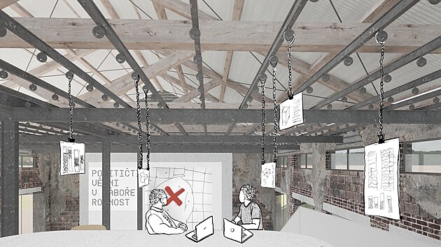 Vize toho, jak by v budoucnu mohl vypadat objekt někdejší řetízkové šatny dolu Rovnost.