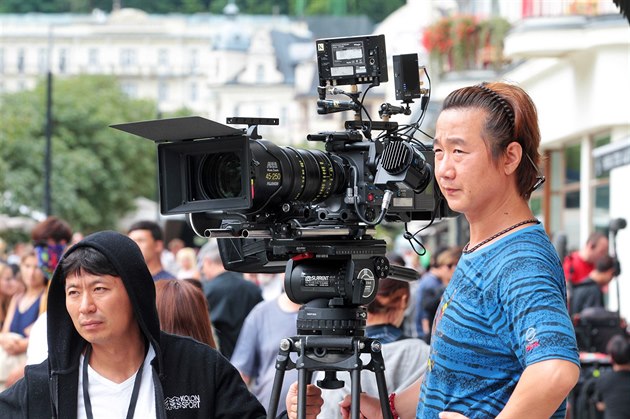 První den natáčení jihokorejských filmařů v centru Karlových Varů.