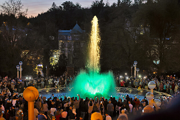Fontána v Mariánských Lázních po důkladné rekonstrukci za obrovského zájmu veřejnosti znovu zazpívala. (30. dubna 2025)