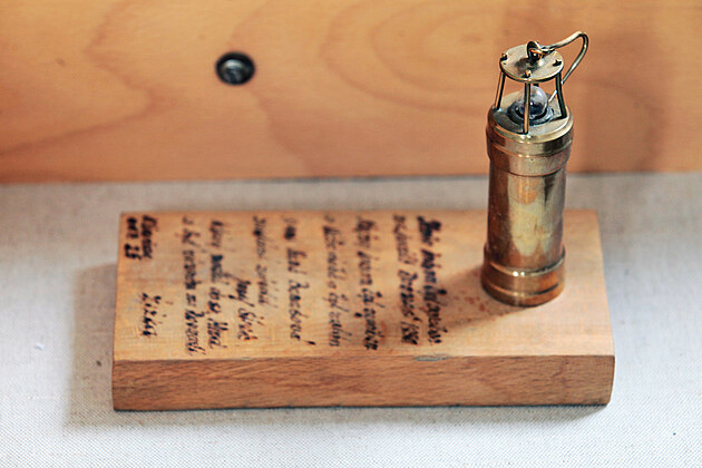 Model důlního kahanu, který vyrobili političtí vězni ve vězeňském zařízení NPT - P Rovnost v roce 1956 a prostřednictvím Josefa Šírka z ilegální skupiny Pražský hrad tajně zaslali vdově po prezidentu Benešovi.