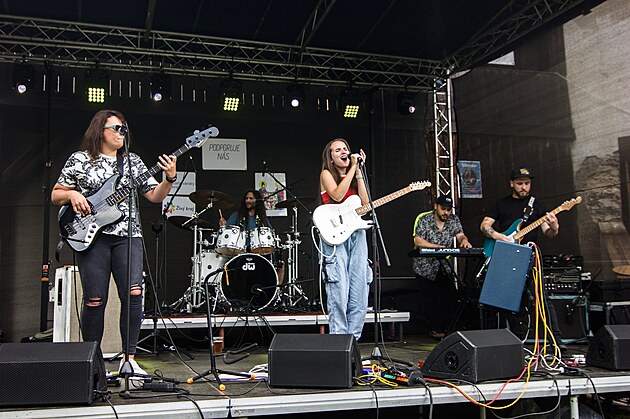 Pod takzvanou bílou věží Šlikova hrádku vystoupila i regionální kapela Pjena.