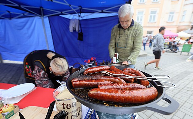 Zástupci maďarské menšiny připravovali na sokolovském náměstí tradiční klobásy.