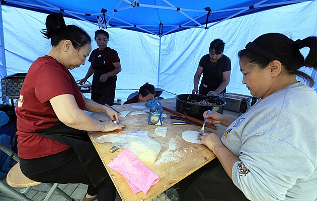 V mongolské jurtě připravovaly ženy tradiční těstové taštičky plněné mletým masem Chušúr.