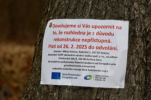 Krásenská rozhledna se při oslavě devadesátin zaskví v novém. Její oprava potrvá v ideálním případě do konce května. (12. března 2025)