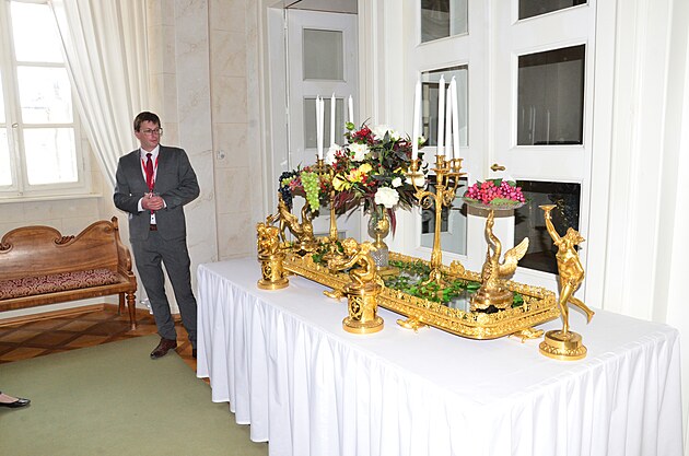 Interiér zámku Kynžvart. Nástolník vrácený z Konopiště.