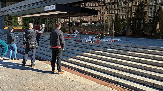 Spontánní pietní místo vzniklo před hotelem Thermal. To oficiální připravuje město ve Smetanových sadech.