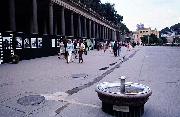 Mlýnská kolonáda v Karlových Varech v roce 1982, kdy byly zahájeny úpravy kolonády. Dlažba byla hotová ještě před revolucí.