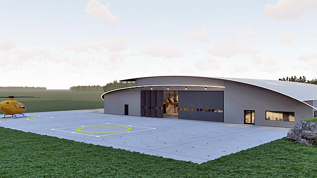 Vizualizace budoucí podoby základny letecké záchranné služby Karlovarského kraje. Sídlo bude mít v areálu karlovarského letiště.